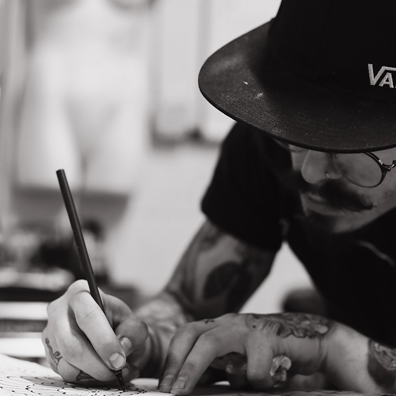 Elijah Heaps is a tattoo artist and musician from Dallas, Texas with his own unique style. His art is powerful, innovative & expressive. He mainly focuses on Decorative calligraphy, ornamental blackwork and illustrated blackwork but also has a strong love for lettering and anything with a special meaning.