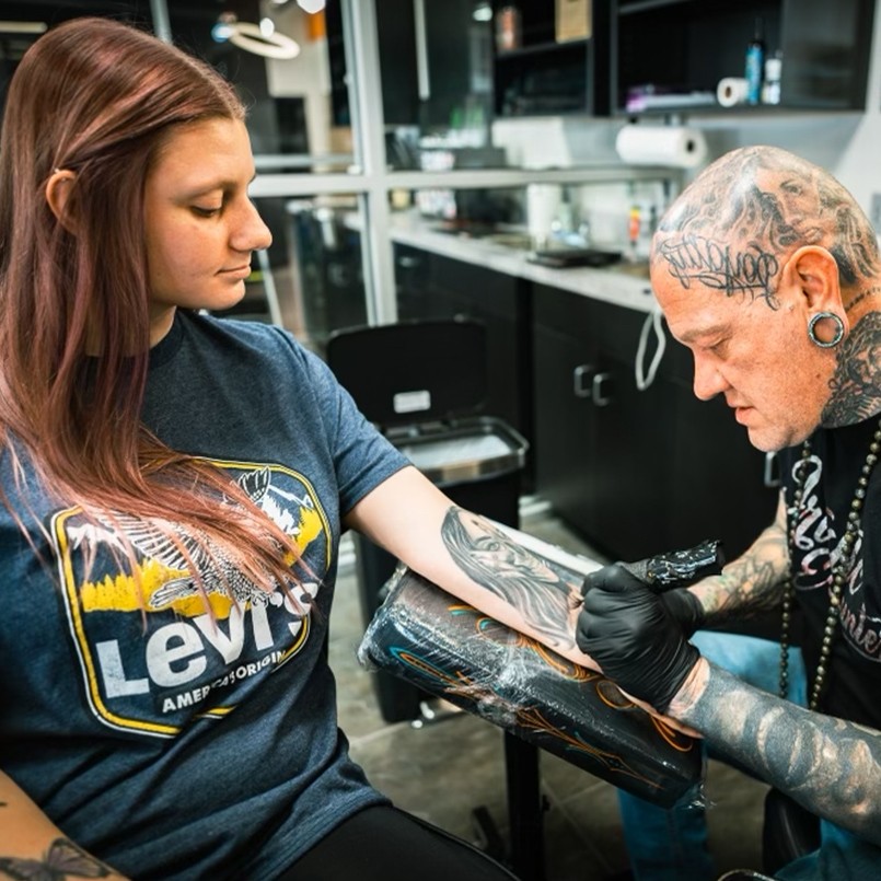 Meet Billyjack Gunter, a tattoo artist and body piercer with 25+ years of experience in the industry. Billyjack’s passion for tattoos began when he got his first tattoo at 14 and started body piercing at 15. He began his journey in Indiana, where tattooing was illegal, and had to work underground with local artists. After finishing three apprenticeships at various studios, he opened up Artistic Encounter, his own tattoo studio in Kentucky, which eventually expanded to five locations in Texas. Billyjack is a proud father to his son Jaxton Kingsley Gunter, who was born three years after he opened his fifth studio. His son’s birth was a turning point in Billyjack’s life, motivating him to continue to evolve as an artist and make positive changes. He sees his son as a source of inspiration and a reminder to always stay true to his passion for tattooing. Billyjack specializes in black and gray photo-realism with large-scale images, and he continues to learn and grow as an artist. His advice to fellow tattoo artists is to stay humble, teachable, and always strive for improvement.